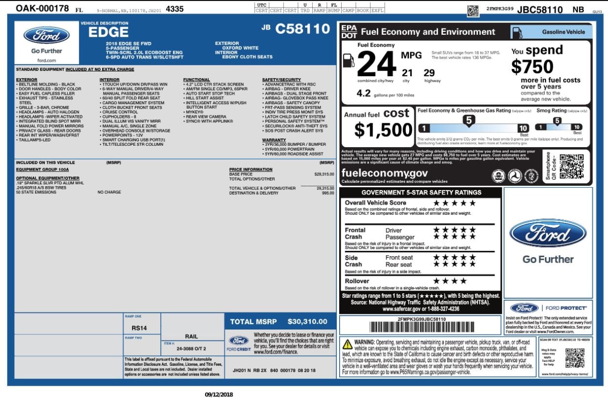 | Vehicle Name | Ford Edge N/A |