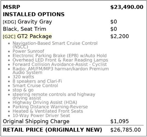 Fuel Economy Est-Combined | NO DATA |
