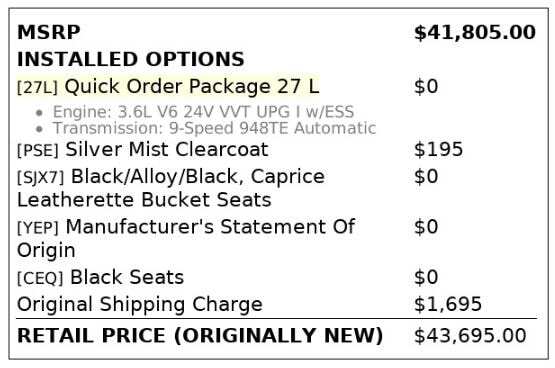 | SAE NET HORSEPOWER @ RPM | 287 @ 6400 N/A |