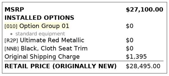 | ENGINE ORDER CODE | NO DATA |