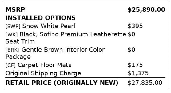 A lot goes into Florida Fine Cars. We combine data from the local market with this car's mileage, features, and inspection findings to arrive at the most competitive price possible for this vehicle. Taxes, tag, destination fee, title, registration fees, government fees, electronic filing fee of $325 and dealer service fee of $995 are additional and not included in vehicle prices. These charges represent costs and profit to the dealer for items such as inspecting, cleaning, and adjusting vehicles, and preparing documents related to the sale. While great effort is made to ensure the accuracy of the information on this site, errors do occur so please verify information with a customer service representative. This is easily done by calling us at 954-417-6380 or by visiting us at the dealership.